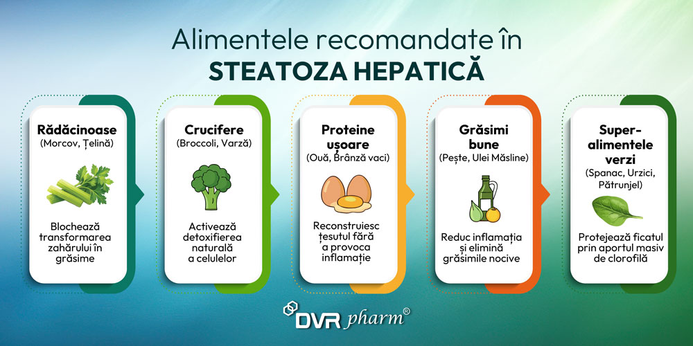 - Alimentația trebuie să excludă carnea roșie, prăjelile și orice formă de zahăr, deoarece acestea întrețin inflamația și grăsimea din ficat.